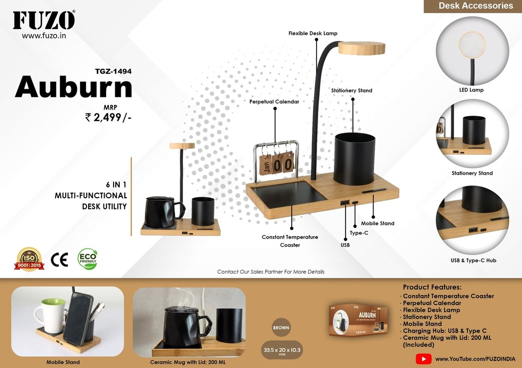 Fuzo | Auburn 6 in 1: Multi-Functional Bamboo Desk Utility