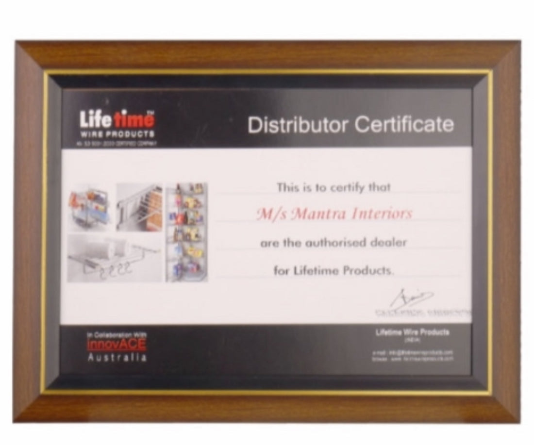 Material: Likely wood for the frame, with a paper or card stock certificate