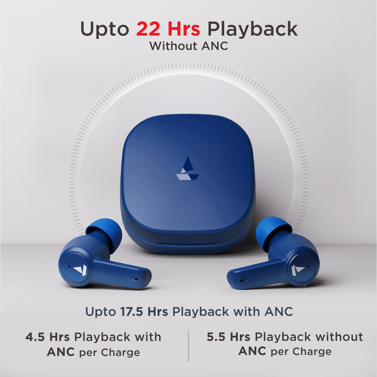 Airdopes 411 ANC - Best Noise-Cancelling earbuds Choose music, not noise with Airdopes 411 ANC by suppressing noise up to 25dB with Active Noise Cancellation. Experience a smooth calling experience like no other with ENx™ Technology. Indulge in the immersive sound from boAt powered by its 10mm Drivers. Groove for as long as you want with a massive 17.5 Hours of total playback time. Never run out of juice as you enjoy your playlist with its ASAP™ Charge that gets you 60 Minutes of performance with just 10 Minutes of charge. Just plug in and listen to the #SoundThatMatters!