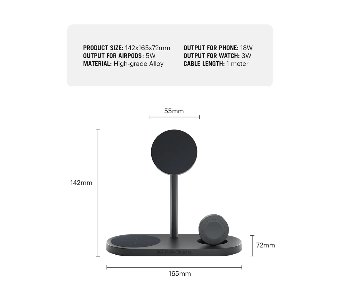 - Made from aluminum alloy to wirelessly charge up to three devices simultaneously
