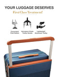 - Aerospace-Grade Innovative Wide Telescopic Trolley Handle: So smooth, it's like the suitcase is offering you a first-class upgrade every time you pull it. Vegan Leather Accents: Design & Style so premium even Mother Earth approves—no animals were harmed in the making of this classy look.