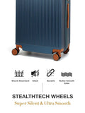 - Unbreakable Polycarbonate Shell: Crafted from durable and unbrakable polycarbonate, ensuring superior protection and resilience during travel. Super Silent StealthTech Wheels: Glide through the airport in ninja mode—these wheels are so quiet, you might forget you're rolling a suitcase.