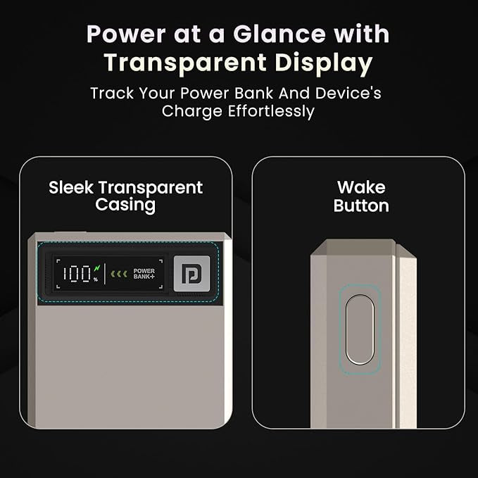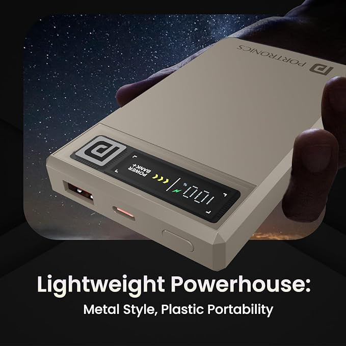 Portronics Luxcell MagClick 10k 10000 mAh 15W Magnetic Wireless Fast Charging Nano Power Bank Premium Finish, 22.5 Wired Output Compatible with iPhone 12 & Above,Type C Smartphones,Tablets(Beige)