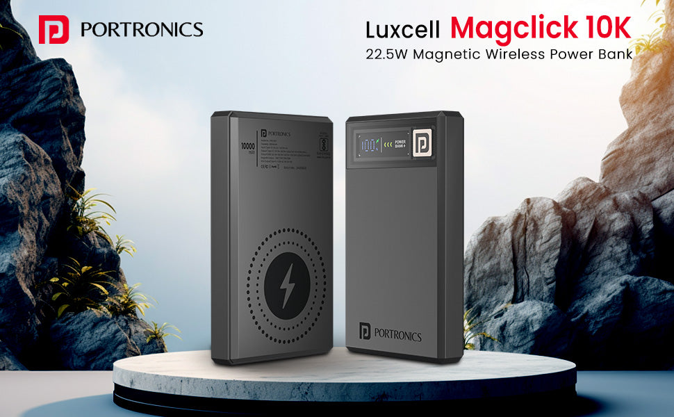 Portronics | Luxcell MagClick 10k 10000 mAh 15W Magnetic Wireless Fast Charging Nano Power Bank