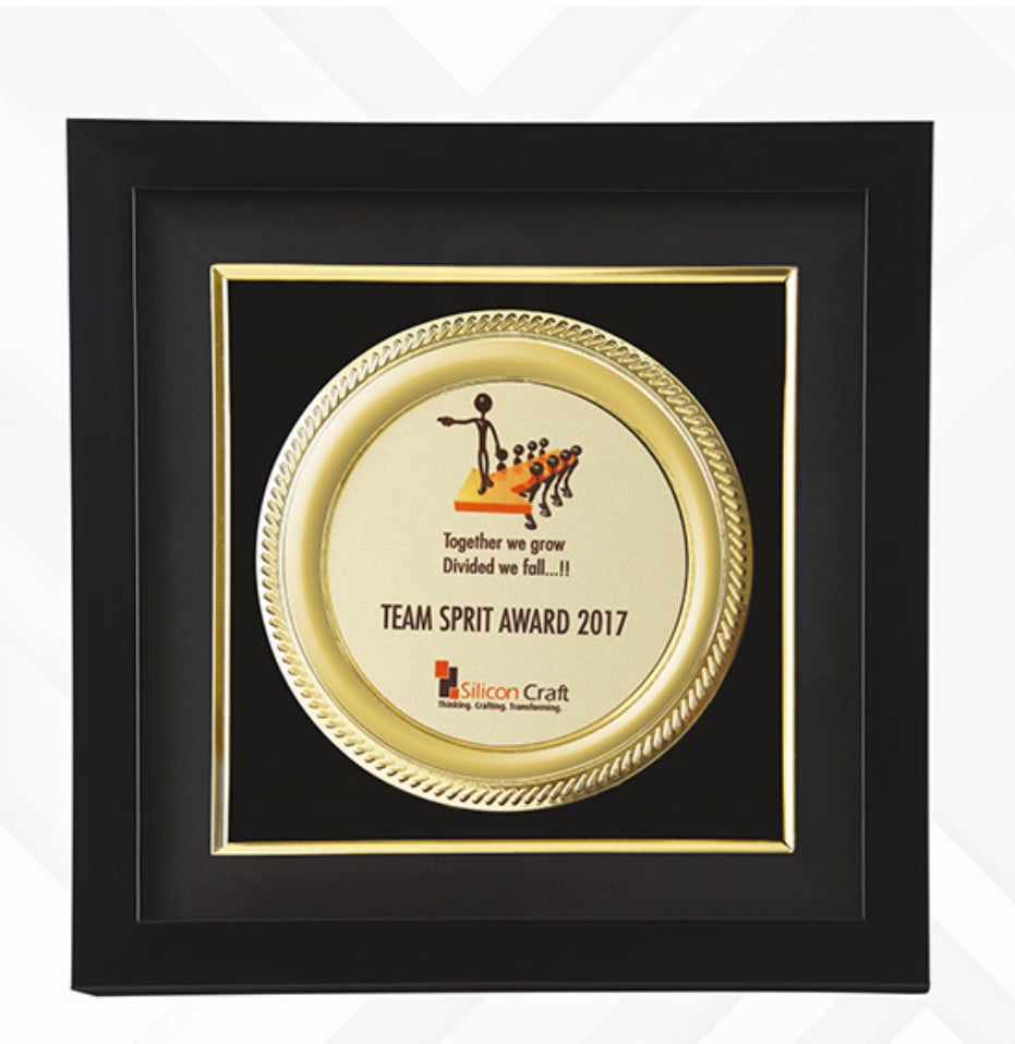 The plaque is set against a black background with a gold border, and the Silicon Craft logo is displayed at the bottom. The overall design exudes a sense of unity and teamwork, emphasizing the importance of collaboration and collective effort. The award is likely intended to recognize and celebrate the achievements of a team or individual who has demonstrated exceptional teamwork and spirit.