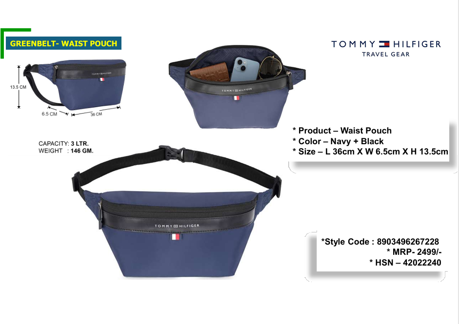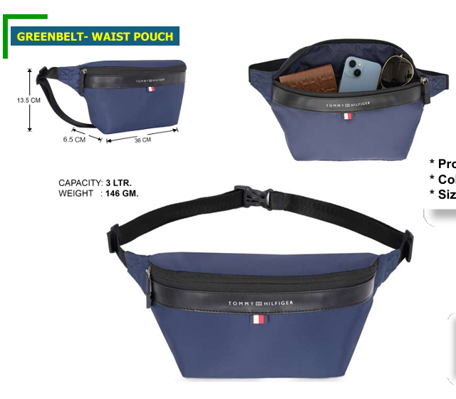 🎒 Tommy Hilfiger Greenbelt Waist Pouch – Navy & Black