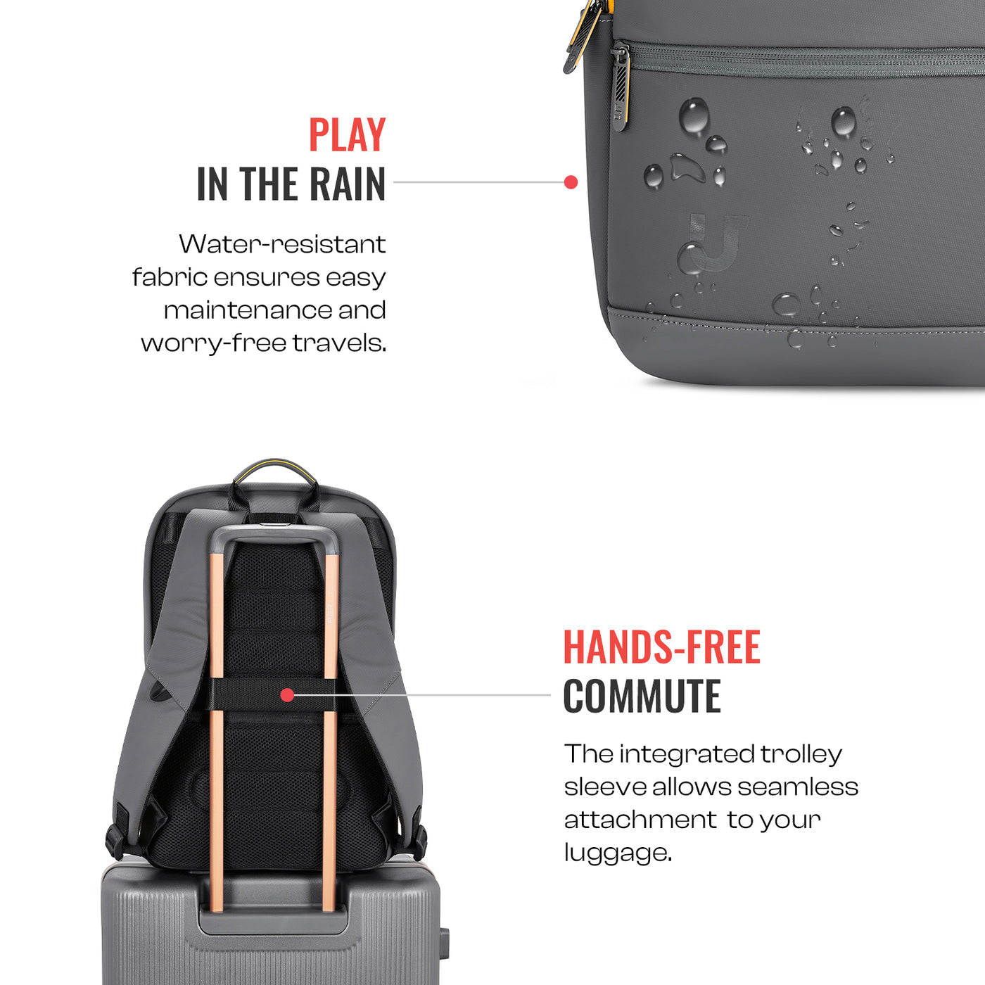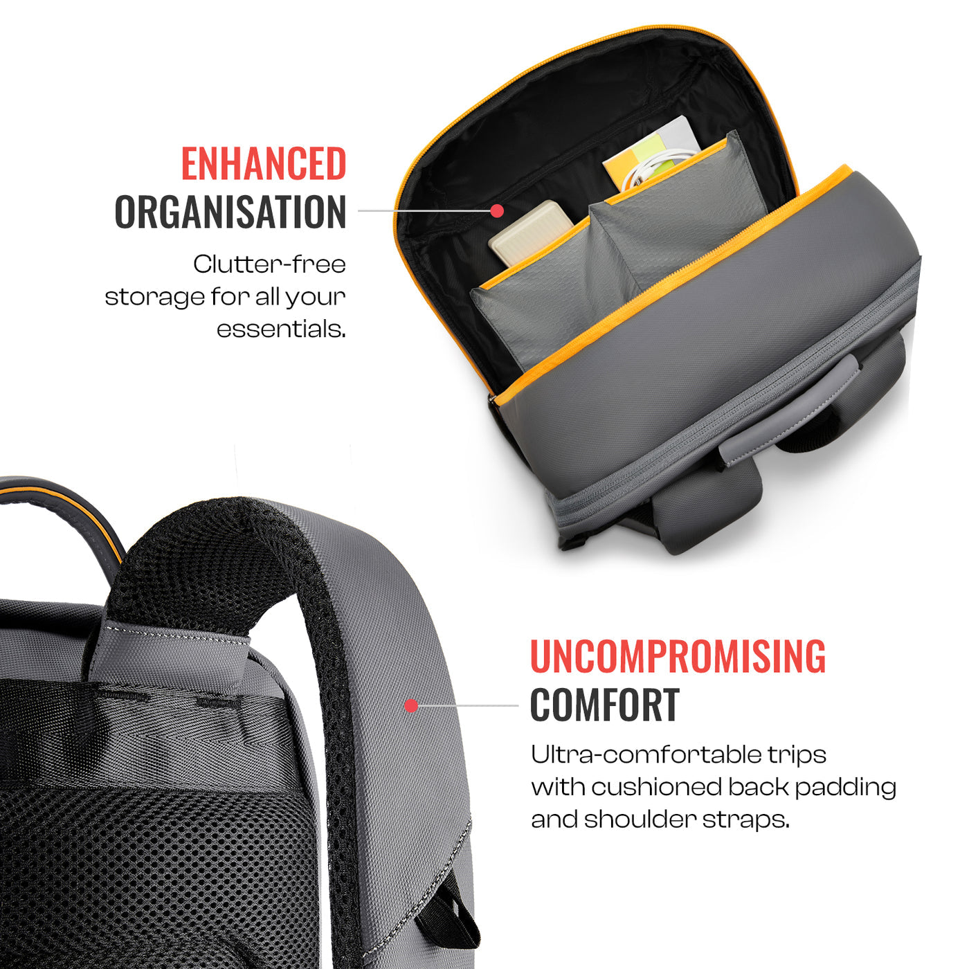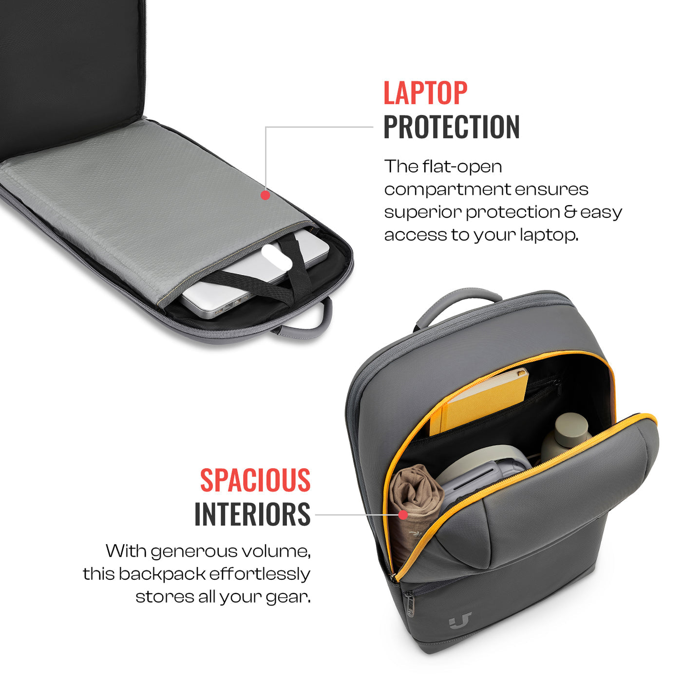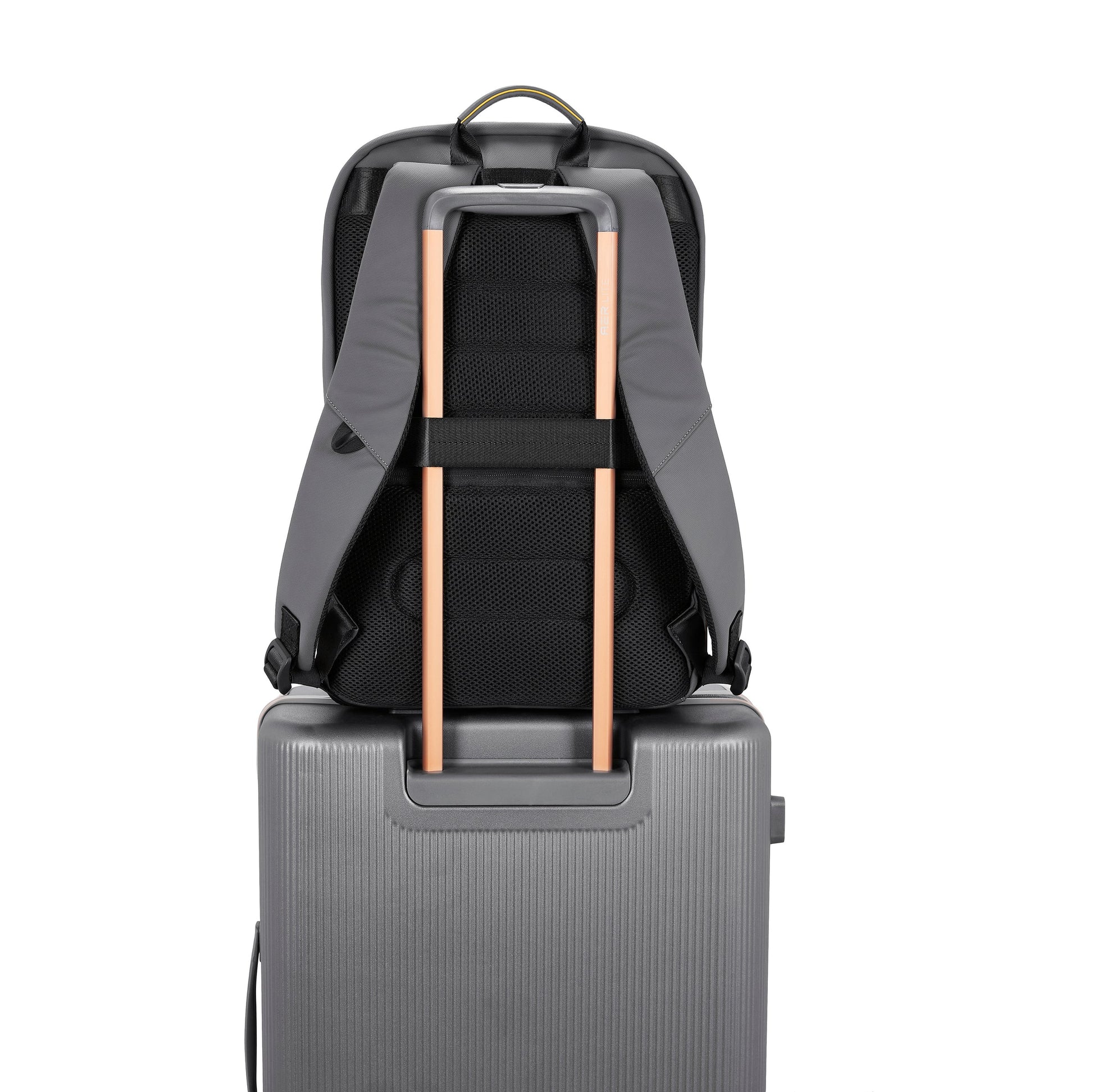 Meet the Domain Backpack, crafted from lightweight, high-strength water-resistant polyester. Its 180° flat-open laptop compartment (up to 16”) grants easy access, while cushioned straps ensure all-day comfort. Safeguard valuables in the anti-theft pocket, store essentials in front utility pockets, and keep everything organized inside. An integrated trolley sleeve completes your hands-free commute.