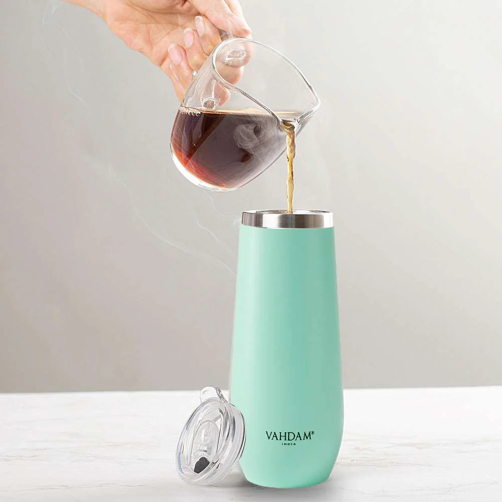 BOLD, SLEEK & SPORTY- Our Caper Tumbler lets you carry your favorite hot or cold beverages on the go! A generous 270ml travel tumbler, made using non-fading powder coated colors. Unmatched quality with a solid sturdy BPA-free body, this tumbler is bound to become an instant favorite. Easy to clean.
